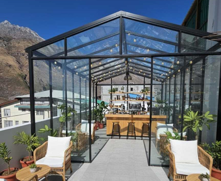 1,000 Sq Ft open-air cafe under the Himalayan sky — refreshments with panoramic mountain views.