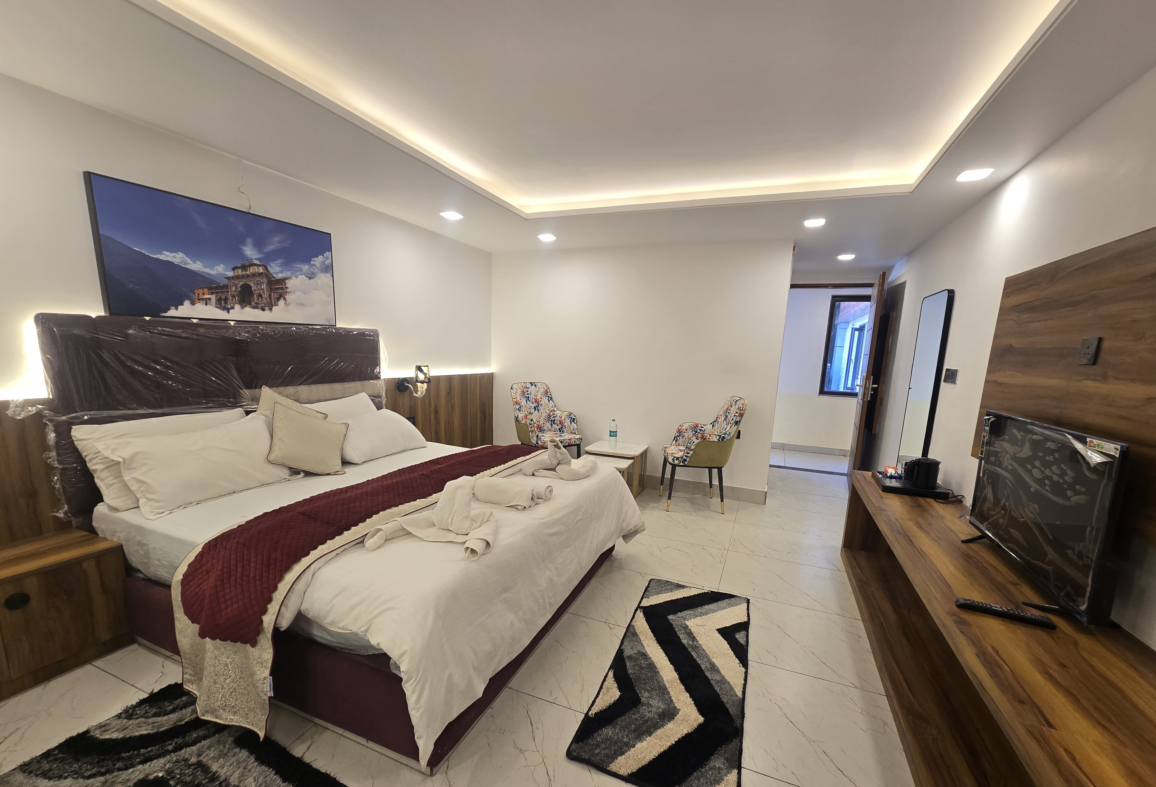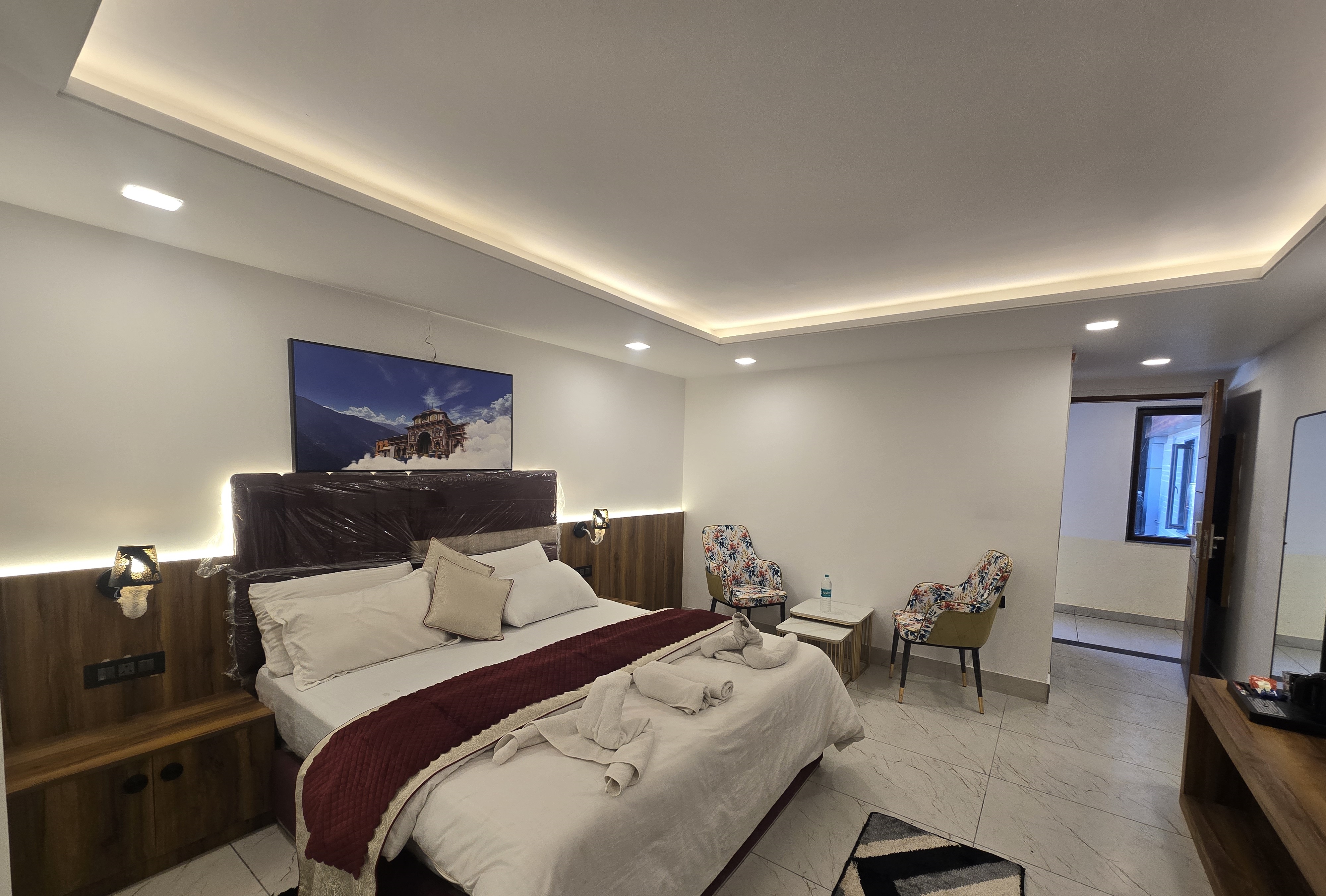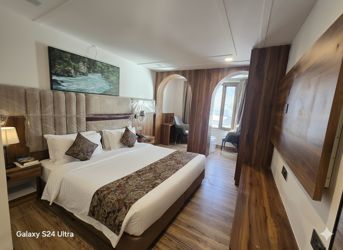 Hotel Royal Badri — A Pilgrim's Habitat is a sacred sanctuary nestled in the Himalayas, positioned just 700 metres from the revered Badrinath Temple. Thoughtfully designed to bridge ancient tradition with modern serenity, it is a meditative retreat for the dedicated seeker. With 41 restorative rooms, pure Sattvic nourishment at the Akshaya Restaurant, an open-air Ambar Sky Café overlooking the mountains, and a dedicated Anugraha Concierge for all your pilgrim needs — Royal Badri ensures your spiritual journey is as seamless as it is profound.